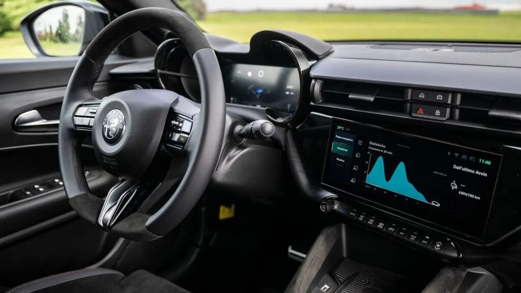 İç mekan, hem sürücü hem de yolcular için rahatlık sunuyor. Elektrikli ayarlanabilir sürücü koltuğu, tamamen dijital gösterge paneli ve 10.25 inç dokunmatik ekran, Apple CarPlay ve Android Auto desteğiyle modern ihtiyaçlara cevap veriyor. Ambiyans aydınlatmalar, şıklığı zarif bir Alfa Romeo dokunuşuyla tamamlıyor.