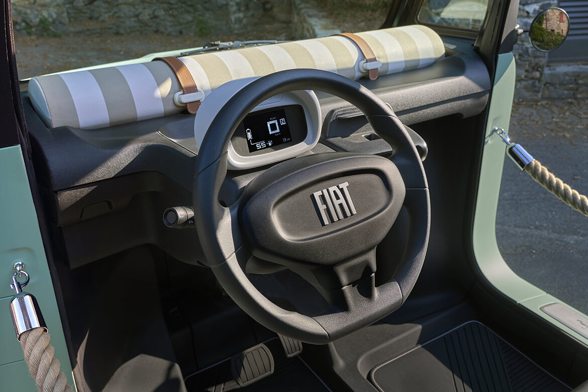 Göz alıcı tasarımıyla dikkat çeken Topolino, opsiyonel kapı seçeneği sunuyor ve özellikle yaz günlerinde keyifli şehir turları için ideal bir tercih olduğu belirtiliyor. Şu an için açıklanan teknik bilgilere göre, Topolino’nun batarya kapasitesi sadece 5.4 kWh olarak belirlenmiş. Araç, ufak boyutlarından dolayı daha büyük bir batarya kullanma imkanı bulamamış ve bu nedenle sürüşe bağlı olarak 75 km’ye kadar menzil sağlayabiliyor. Gündelik kullanım için oldukça yeterli olan bu menzil değeri, aracın maksimum hızının 45 km/s olduğu düşünüldüğünde oldukça tatmin edici.